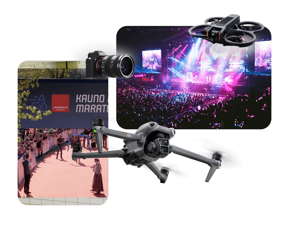 Filmuojame ir fotografuojame dronu bei kamera – renginiams, NT projektams, vestuvėms, reklamai ir automobilių pristatymams. Įspūdingi kadrai iš oro ir žemės išryškina jūsų projektą ir pritraukia dėmesį. Susisiekime dėl detalių!